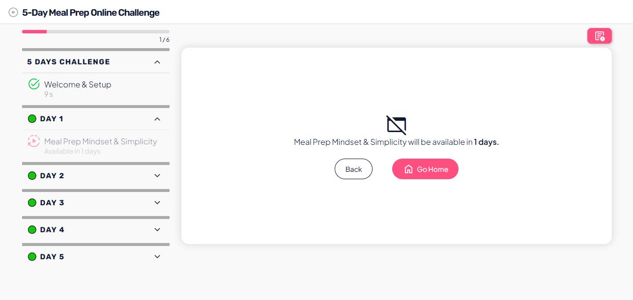 A challenge does not have classic modules – content is typically organized by days or sequential steps.