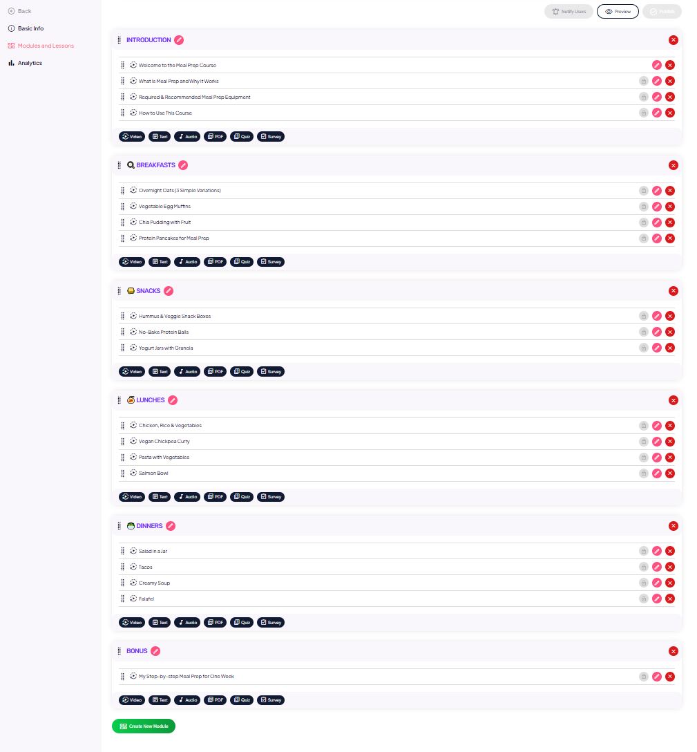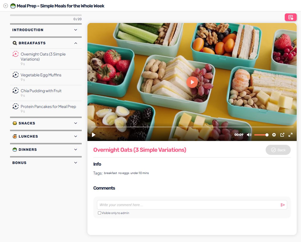 A Collection Course in audienced is designed for content where there is no linear progression. Instead, users choose lessons based on their own needs. Typical examples include recipe libraries, exercise libraries, topic-based knowledge, or curated content collections.