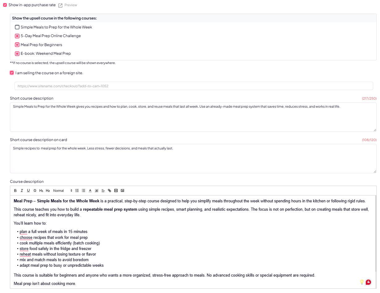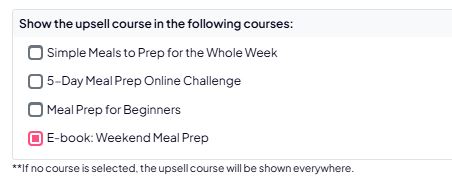 Here you define which existing users will see this sales course as an upsell, based on which course (paid or free) they already have access to.