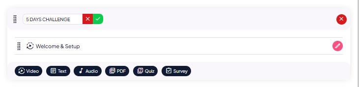 Each lesson can include video, PDF, audio, a quiz, a survey, or a combination of content—depending on the course type. To add a new lesson to a module, select the lesson type by clicking the button that takes you to the next step.