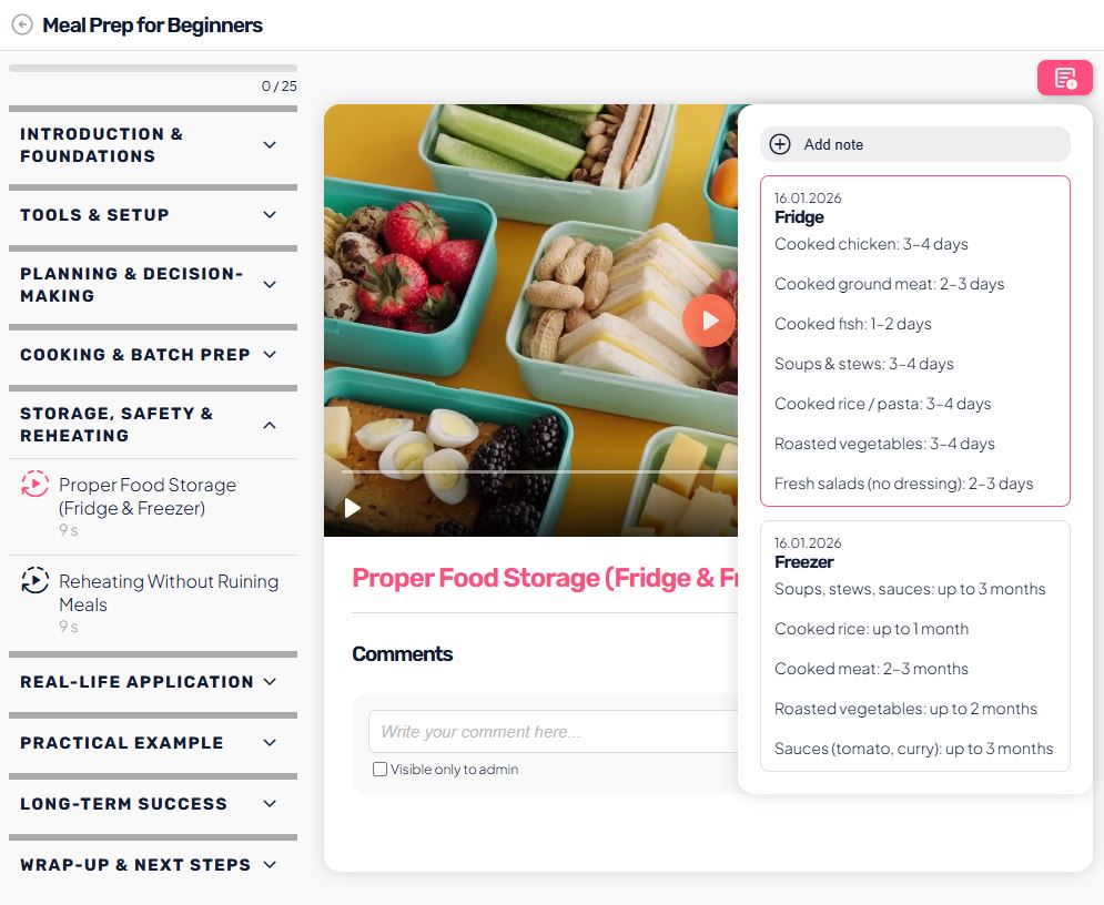 User Notes allow each user to create their own private notes while watching lessons. These notes are visible only to the user who created them – not to the admin or the course creator.