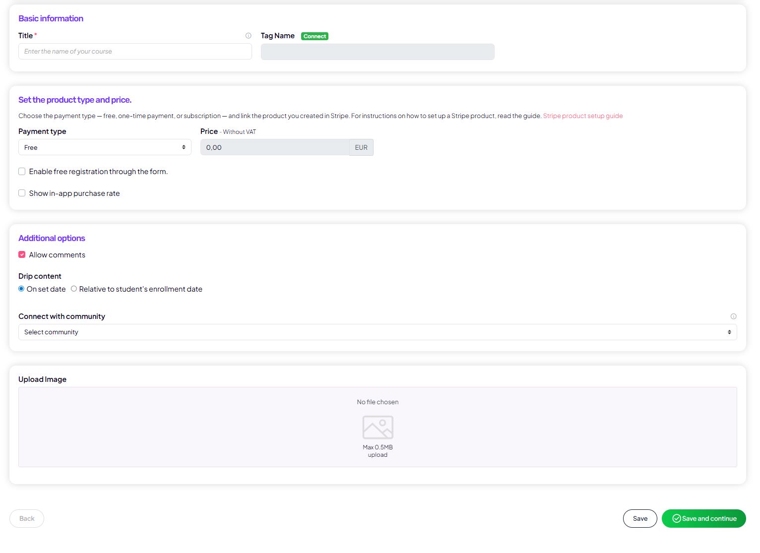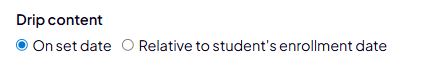 The key difference in a drip course is the gradual content publishing setting. Two options are available:
