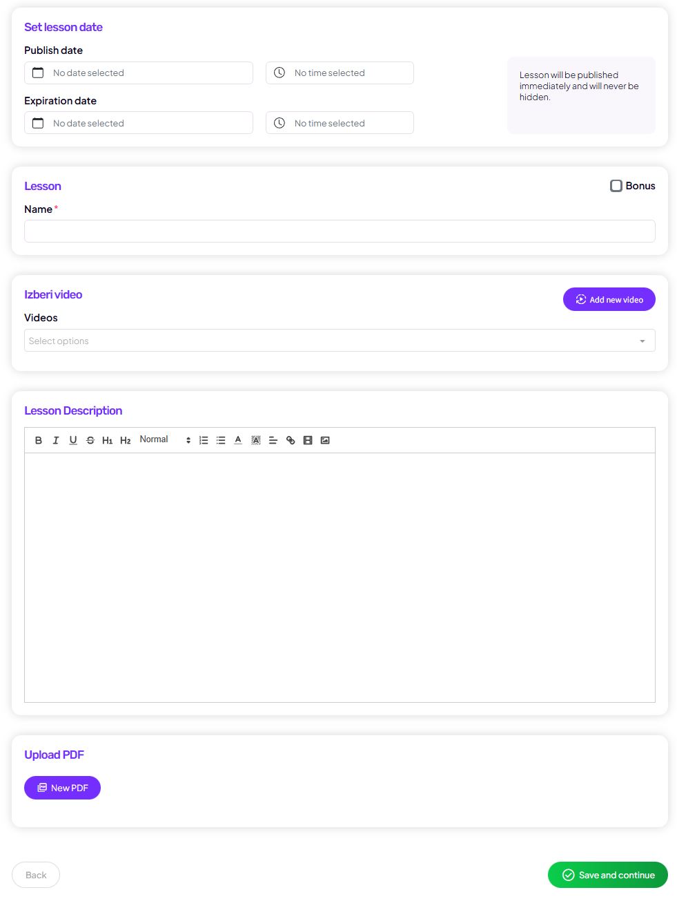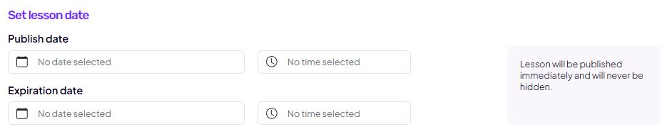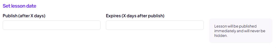 Lessons unlock at an exact date and time. This option is suitable for group programs, challenges, or launches with a defined start.