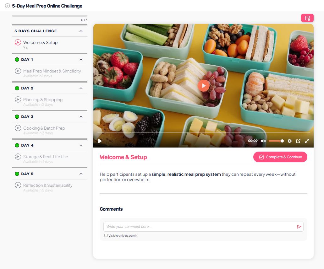 A drip course in audienced is designed for content that unlocks gradually over time for users. It is suitable for programs where you want to control the learning pace, prevent skipping ahead, or schedule content by days, weeks, or specific dates (e.g. challenges, mentorships, guided programs).