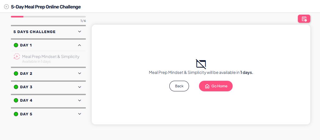 Lessons that have not yet unlocked are visible but not accessible to users, which clearly shows the program flow and the expected pace.